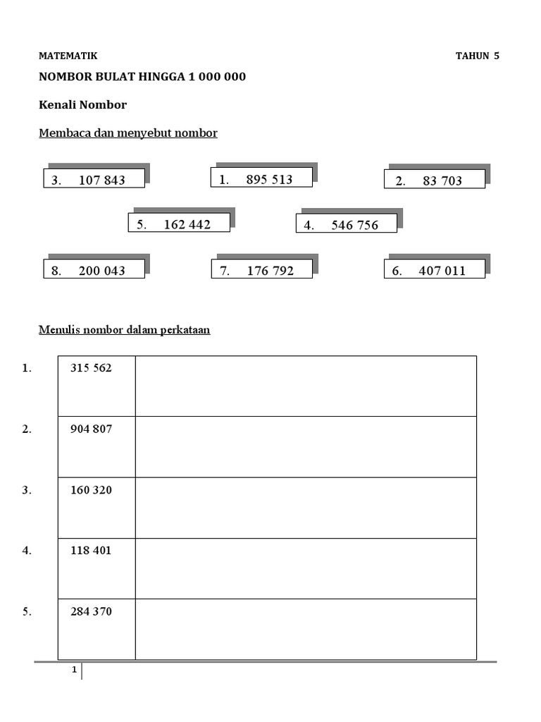 1 nombor bulat hingga 10 000. Nombor Bulat Hingga 1 000 000 Set 1 1. September 7 2022 soalan latih tubi matematik ini adalah himpunan contoh soalan matematik.
